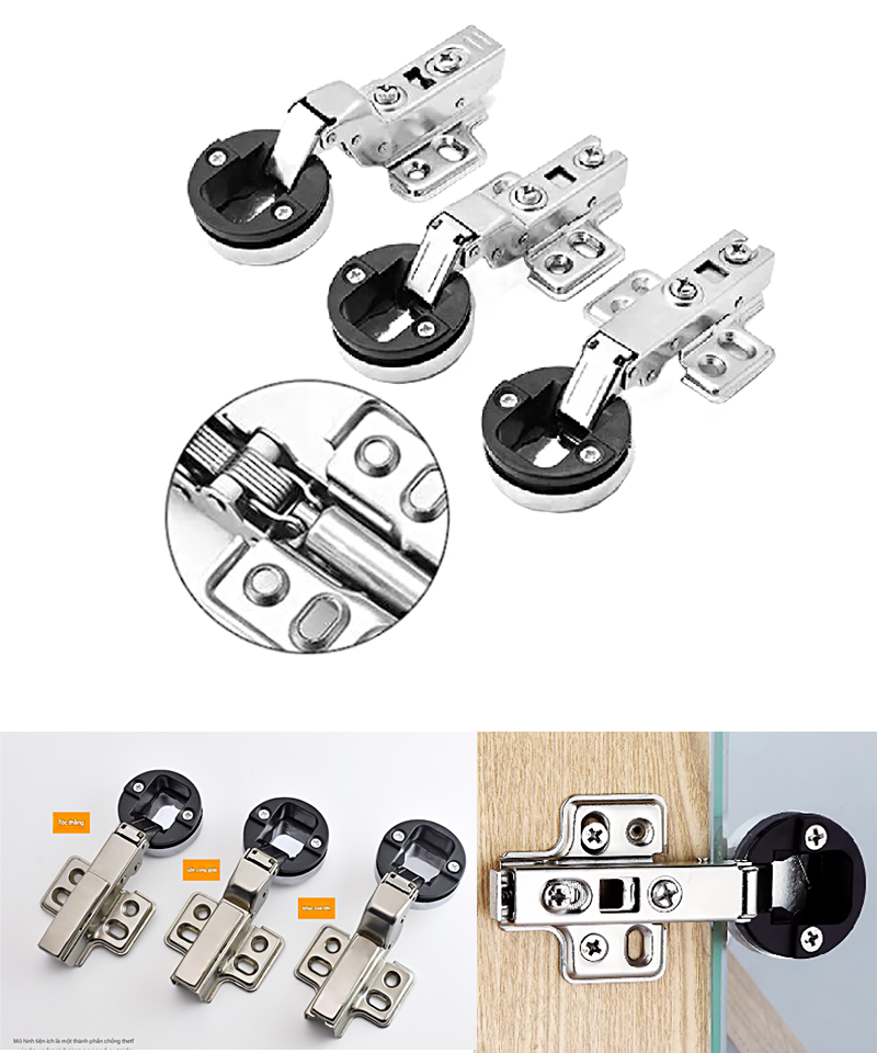 Cơ chế hoạt động: Khi bạn đẩy cửa đóng lại, lực lò xo sẽ kéo cánh cửa vào. Tuy nhiên, khi cửa gần khép kín (khoảng 30-40 độ), pít-tông dầu sẽ hoạt động như một bộ hãm lực. Nó kìm hãm tốc độ đóng, giúp cánh cửa di chuyển chậm dần đều và khép lại nhẹ nhàng vào thành tủ.