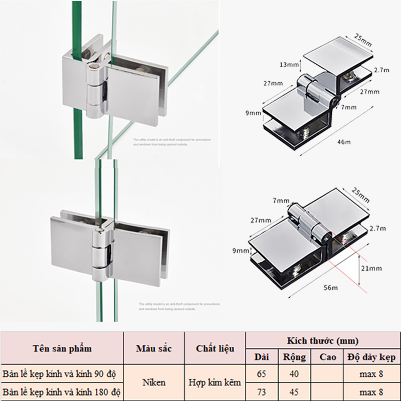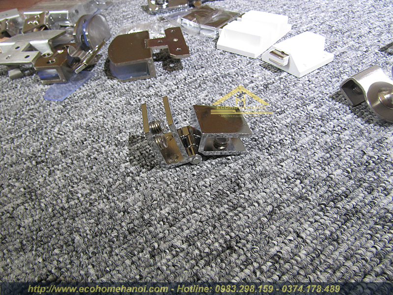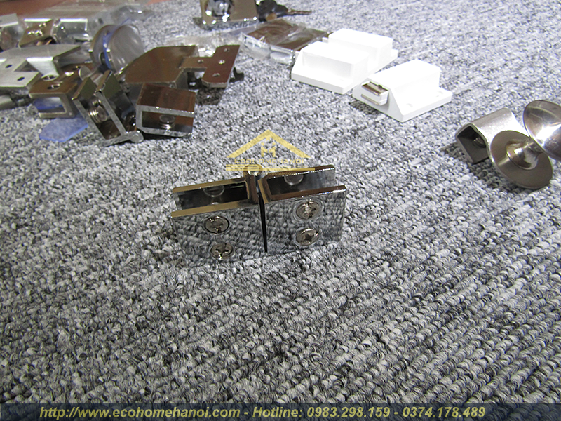 Lợi ích: Bạn không cần phải khoan lỗ phức tạp trên tấm vách kính cố định (việc khoan lỗ sát mép kính rất rủi ro vỡ). Chỉ cần xác định vị trí, đưa bản lề vào và siết ốc. Lớp đệm nhựa đi kèm giúp tăng ma sát và bảo vệ kính khỏi trầy xước.