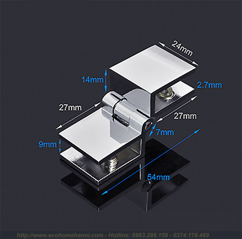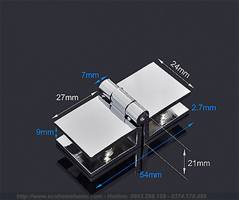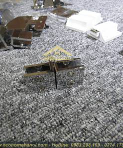 Bề mặt Chrome bóng: Lớp mạ sáng như gương (Mirror Finish) giúp bản lề “tàng hình” dưới ánh đèn, hòa nhập hoàn toàn với vẻ trong suốt của kính, tạo cảm giác không gian trưng bày rộng hơn.