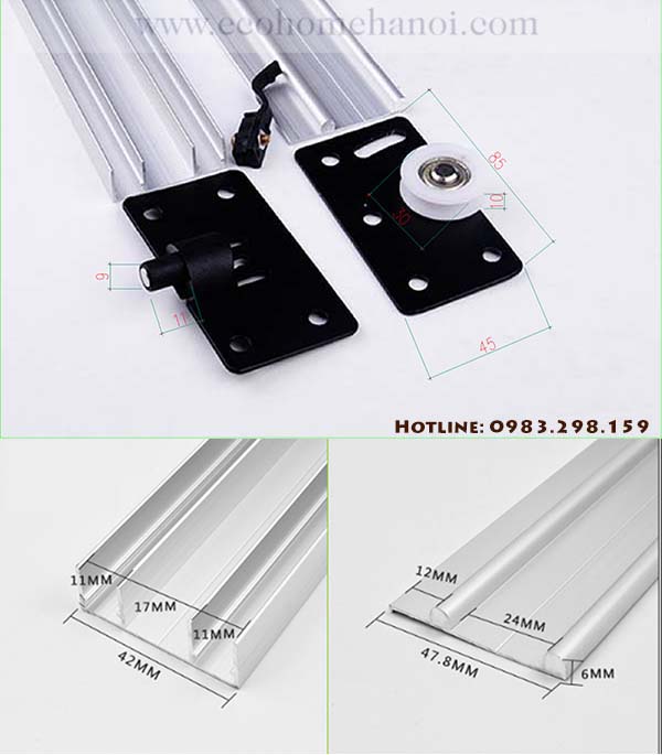 – Hệ ray kép gồm ray trên và ray dưới chất liệu hợp kim nhôm