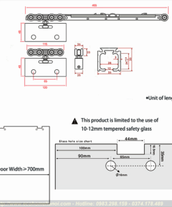 Ứng dụng: Lắp cho 1 cánh cửa kính trượt ray treo (dùng với ray SD.5009.R)