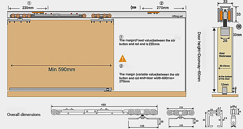 Ứng dụng: Dùng cho cửa lùa treo cánh gỗ hoặc kính, cửa thông phòng, cửa chính…