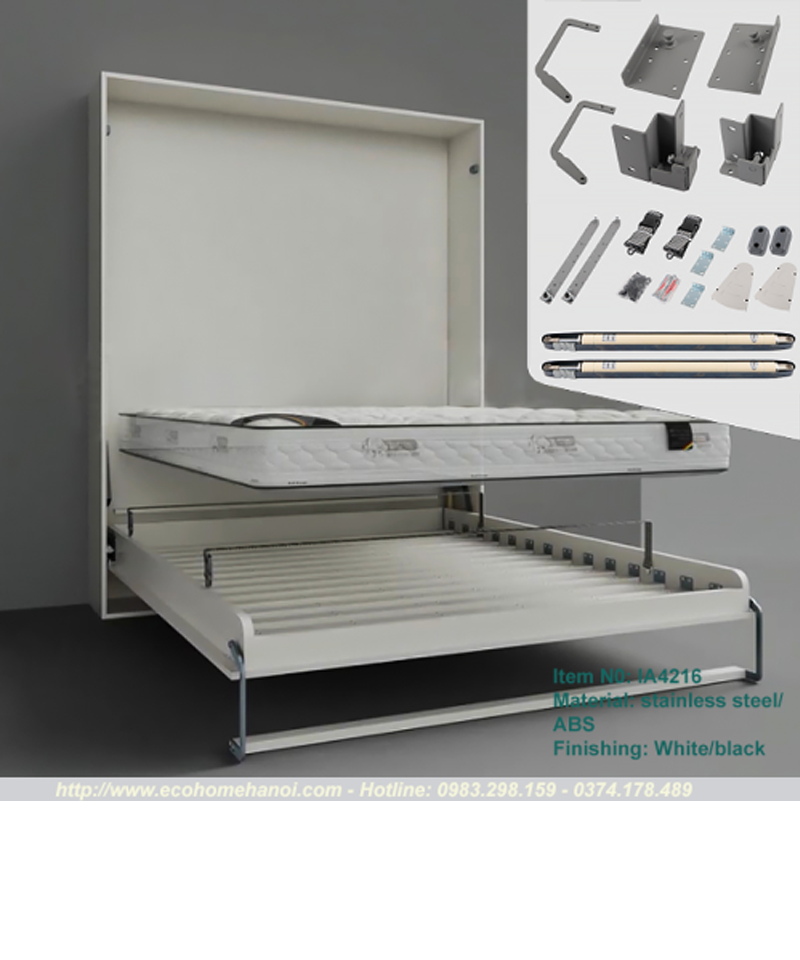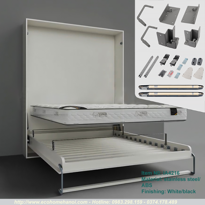 Được thiết kế chuyên dụng với tải trọng lên tới 300kg, chất liệu bền bỉ và vận hành êm ái, IA4216 là giải pháp tối ưu giúp giường có thể gập lên thành cánh tủ khi không sử dụng, mang lại không gian sống linh hoạt, hiện đại và thẩm mỹ cao.