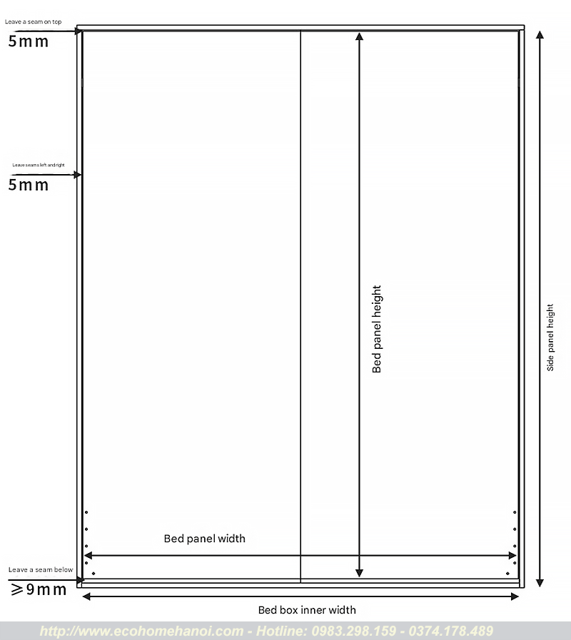 Cách lắp: Gắn hai bên hông giường và khung vách
