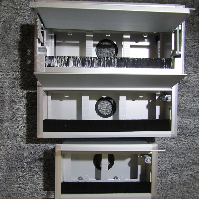 Size 300mm: Kích thước phủ bì 300mm, kích thước hộp âm 290mm. Thích hợp cho bàn họp hoặc cụm bàn làm việc nhóm, chứa khoảng 3-4 module thiết bị.
