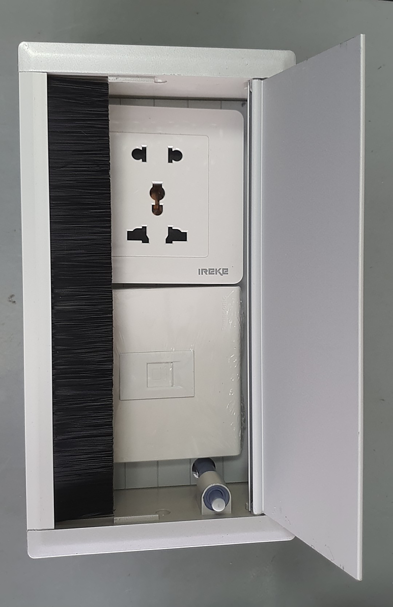 Hộp đế âm cánh mở 2 bên (Mở 2 chiều): Được trang bị 2 cánh mở lật về 2 phía. Đây là lựa chọn tuyệt vời cho bàn họp lớn hoặc bàn làm việc nhóm đối diện nhau, giúp người ngồi ở cả hai phía đều có thể tiếp cận nguồn điện dễ dàng.