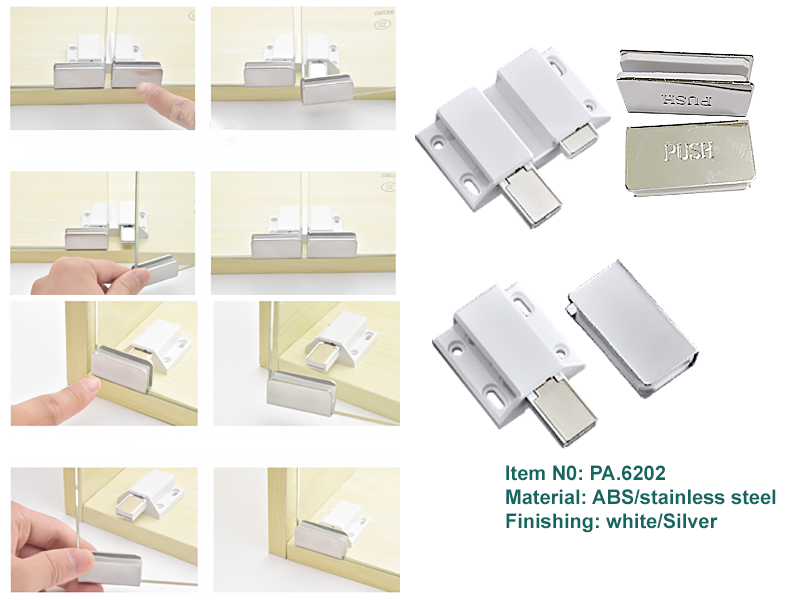 Một lo ngại thường gặp ở các loại chốt rẻ tiền là lực nam châm yếu, khiến cánh tủ cứ bị “hé” ra, không khít. Mã PA.6202 được trang bị lõi nam châm vĩnh cửu với lực hút mạnh, đảm bảo cánh cửa kính (vốn nặng hơn cửa gỗ) luôn được giữ ở trạng thái đóng ổn định, ngăn bụi bẩn xâm nhập vào tủ.