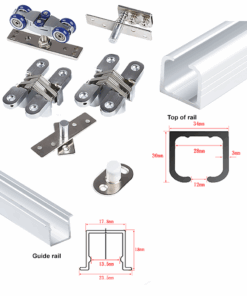 Bộ sản phẩm gồm ray trên dưới và hệ bánh xe chuyển động.