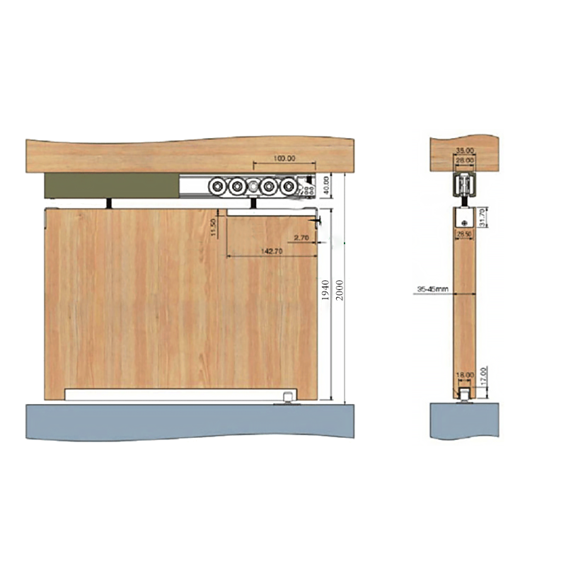 – Cửa gỗ trượt lớn, hệ cửa trượt công nghiệp