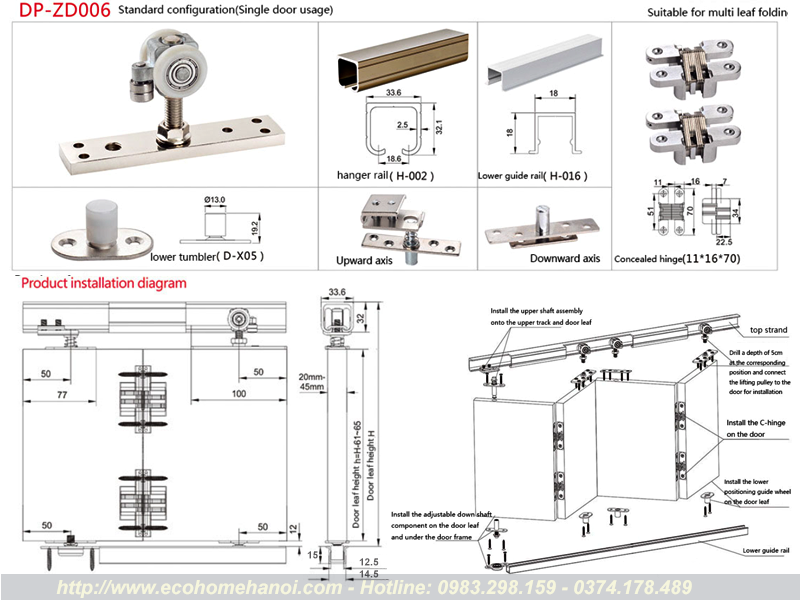 Ứng dụng: Cửa gỗ, cửa nhựa, cửa nhôm kính xếp gập