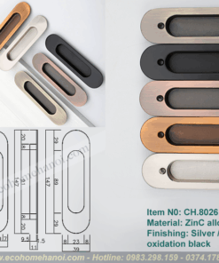 Tay nắm âm hai mặt CH.8026 thiết kế tinh tế, đối xứng hai mặt trong – ngoài, tạo điểm nhấn sang trọng cho cửa lùa, cửa phòng. Chất liệu hợp kim kẽm chắc chắn, hoàn thiện cao cấp.
