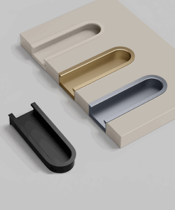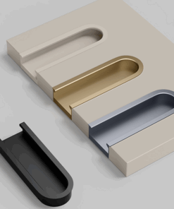 Thiết kế tay nắm chữ U là kiểu dáng được ứng dụng phổ biến trong các sản phẩm tay nắm âm nhờ cấu trúc dễ thao tác và phù hợp với nhiều phong cách nội thất. Phần rãnh được khoét lõm xuống vừa đủ để đặt ngón tay, giúp việc mở – đóng tủ trở nên đơn giản và thoải mái.