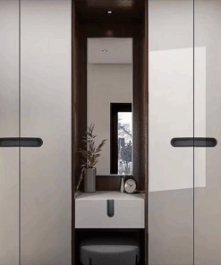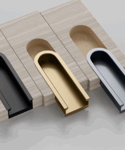 Khi lắp hoàn thiện, mặt tay nắm sẽ nằm phẳng với bề mặt tủ, không gây nhô ra ngoài.