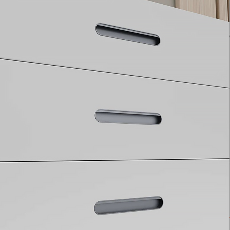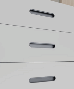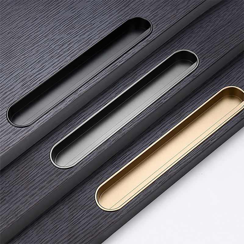 Nếu các mẫu tay nắm âm hình chữ nhật mang lại cảm giác mạnh mẽ, cứng cáp thì tay nắm âm tủ hình bầu dục lại mang đến sự mềm mại, uyển chuyển. Các đường cong bo tròn giúp cân bằng lại những đường thẳng khô khan của hệ tủ gỗ công nghiệp, tạo nên sự hài hòa về thị giác. Khi lắp đặt, nó như một phần nguyên bản của cánh tủ, tạo nên một mặt phẳng liền mạch, sang trọng.