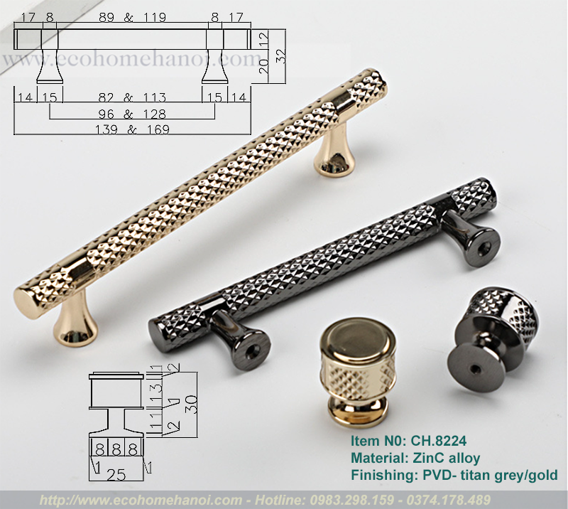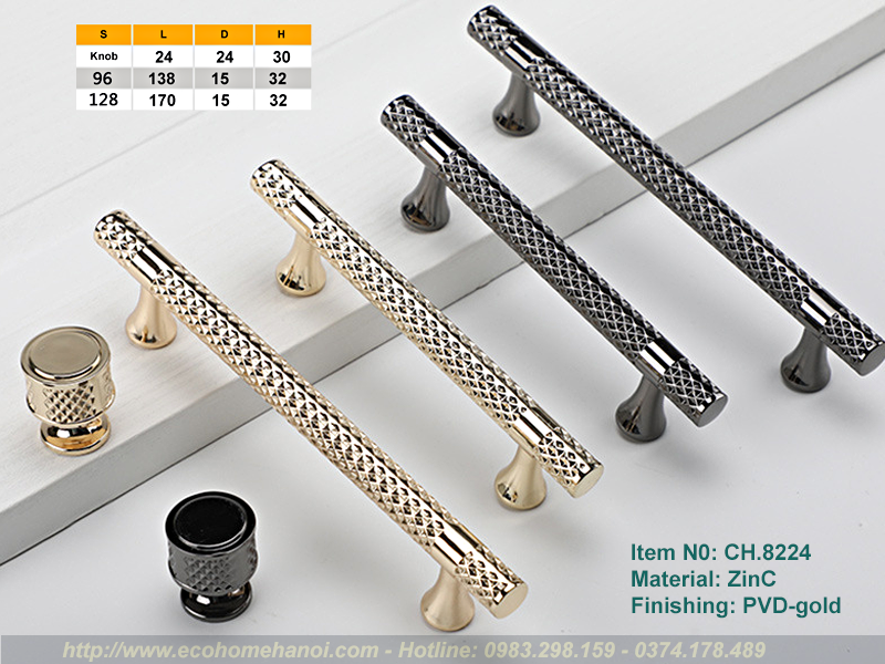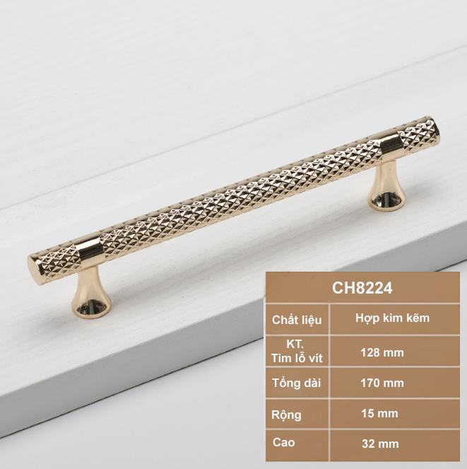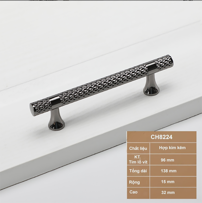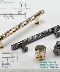 Trong ngôn ngữ thiết kế, bề mặt Knurled (quả trám/nhám) thường thấy trên các nút vặn amply hi-end, đồng hồ cao cấp hay chi tiết cơ khí chính xác. Khi mang chi tiết này lên tay nắm tủ, CH8224 toát lên vẻ đẹp mạnh mẽ, sắc sảo và cực kỳ chi tiết. Nó biến chiếc tay nắm nhỏ bé thành điểm nhấn đắt giá, xóa tan sự đơn điệu của những cánh tủ phẳng lì.