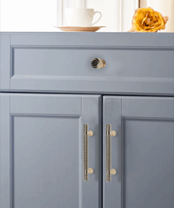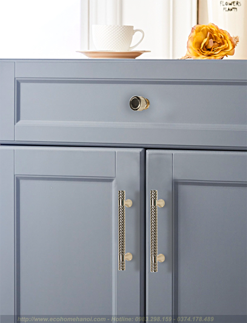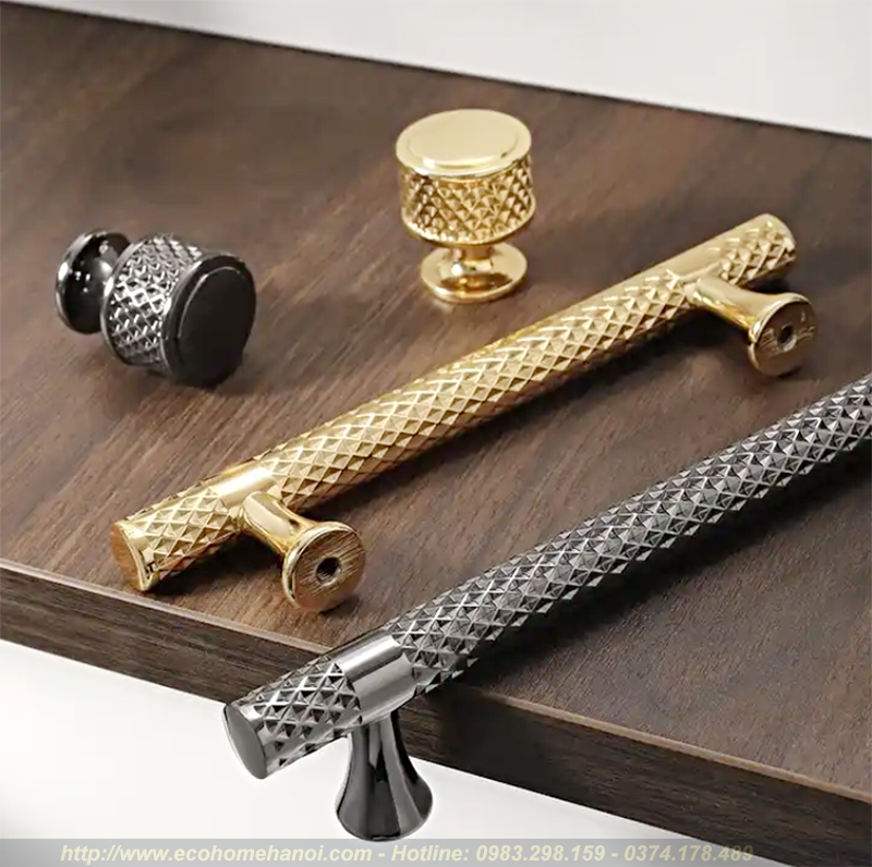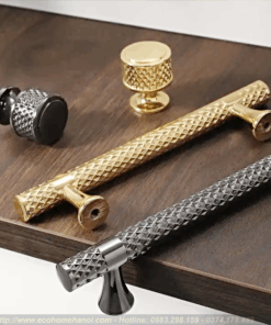 Phối hợp: Phù hợp cho phong cách Luxury, Neo-Classic hoặc Contemporary. Hãy thử tưởng tượng những chiếc núm vàng lấp lánh trên nền tủ bếp màu xanh Navy (Deep Blue) hoặc màu đen than chì (Charcoal) – đó chính là sự đẳng cấp.