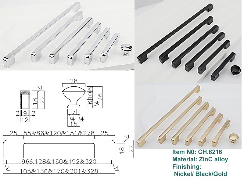 Khi lựa chọn phụ kiện tủ, đặc biệt là khu vực bếp và phòng tắm, độ bền chất liệu là yếu tố tiên quyết. Tay nắm CH8216 được chế tác từ Hợp kim kẽm (Zinc Alloy) cao cấp.