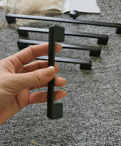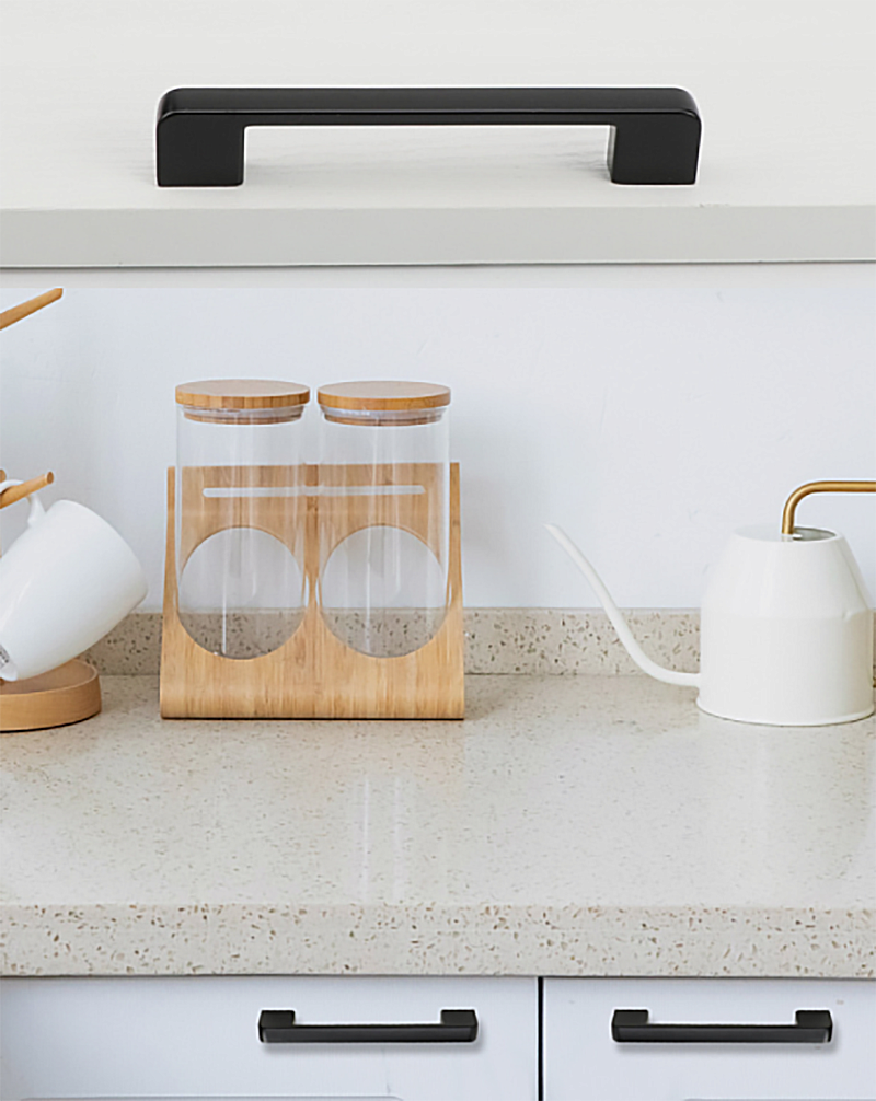 Đây là sự lựa chọn số 1 cho các hệ tủ màu trắng, xám bê tông hoặc gỗ sáng màu. Màu đen tạo độ tương phản mạnh, biến tay nắm thành điểm nhấn hút mắt. Nó đại diện cho sự hiện đại, bí ẩn và sạch sẽ.