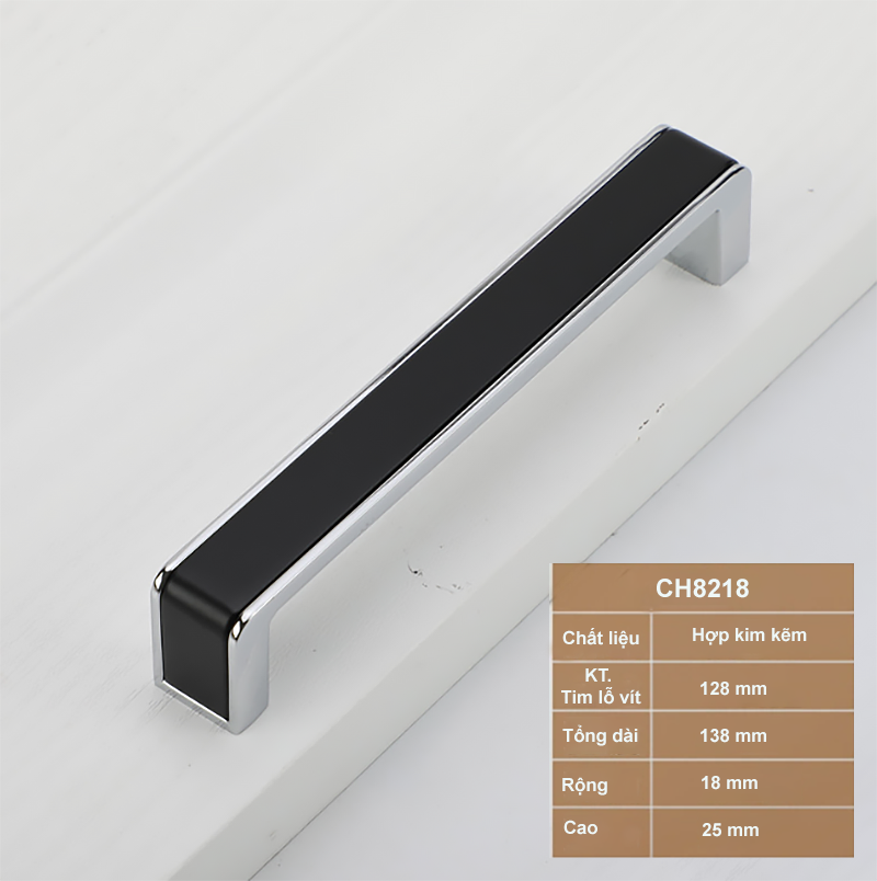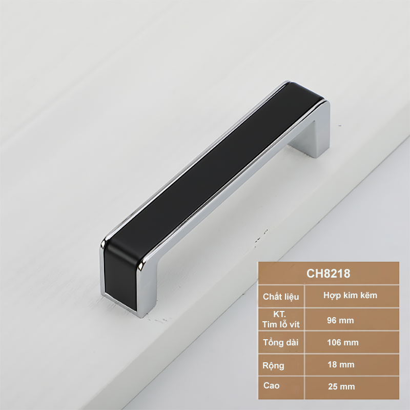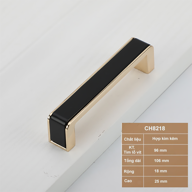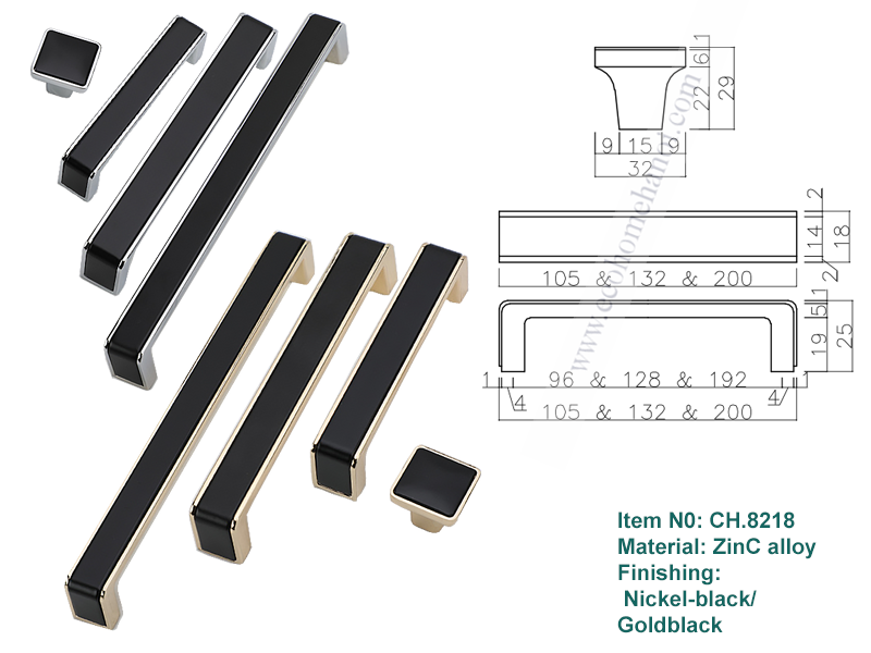 TAY NẮM TỦ HIỆN ĐẠI CH.8218 – MẠ VÀNG PVD/NICKEL, PHỐI ĐEN SANG TRỌNG