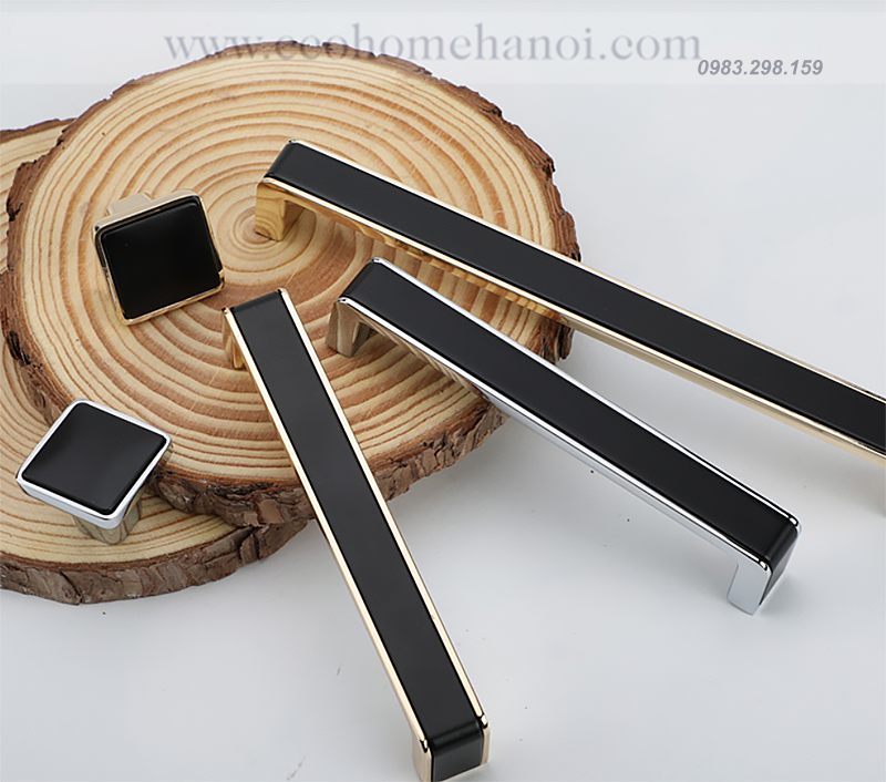 Phối màu thời thượng: Đen – vàng hoặc đen – nickel tạo hiệu ứng thị giác ấn tượng, dễ phối với nhiều loại tủ bếp, tủ áo, ngăn kéo, nội thất decor hiện đại.