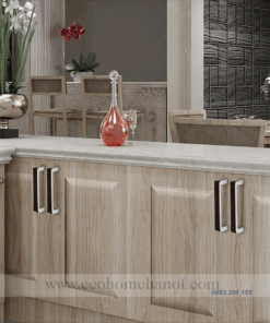 Thiết kế hiện đại – mạnh mẽ: Kiểu dáng vuông vức, góc cạnh sắc nét kết hợp màu đen trung tâm làm điểm nhấn, tạo sự nổi bật và tinh tế cho cánh tủ.